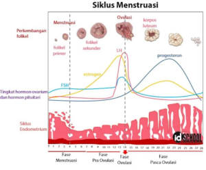 Siklus menstruasi, dapat dilihat bahwa proses haid terjadi melalui beberapa tahapan yang saling berkaitan dan dipengaruhi oleh keseimbangan hormon dalam tubuh. Siklus dimulai dari fase menstruasi, kemudian berlanjut ke fase pra-ovulasi dimana hormon FSH membantu pematangan folikel dan hormon estrogen mulai meningkat. Selanjutnya, lonjakan hormon LH memicu terjadinya ovulasi.